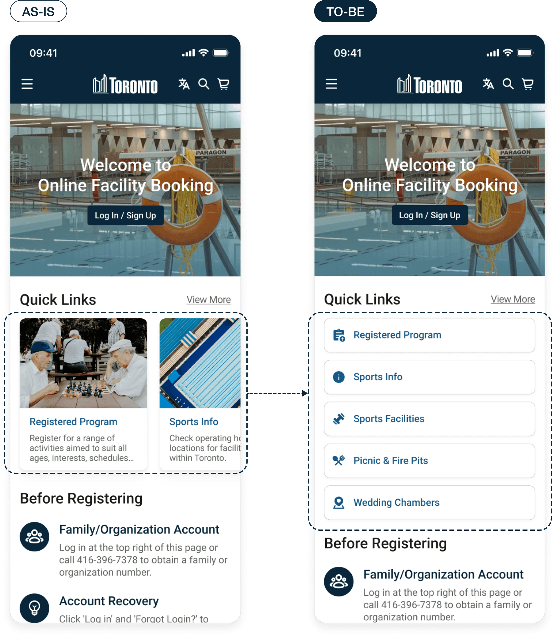 The goal is to provide a more intuitive, efficient, and mobile-friendly booking experience,allowing straightforward access to the City of Toronto's recreation services.